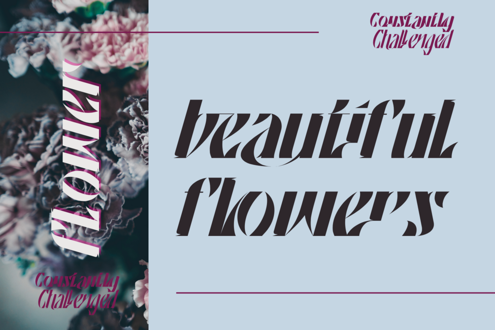 Constantly Challenged Font is X-Games Sport Font, and modern futuristic hi-tech atmosphere and style. It's a celebration of beauty, offering a timeless aesthetic that appeals to high-end fashion brands, luxury publications, and upscale branding projects. Use it in your projects in such areas as robots&androids, cyberpunk, hi-tech, future, virtual reality, space, army, games and many others.