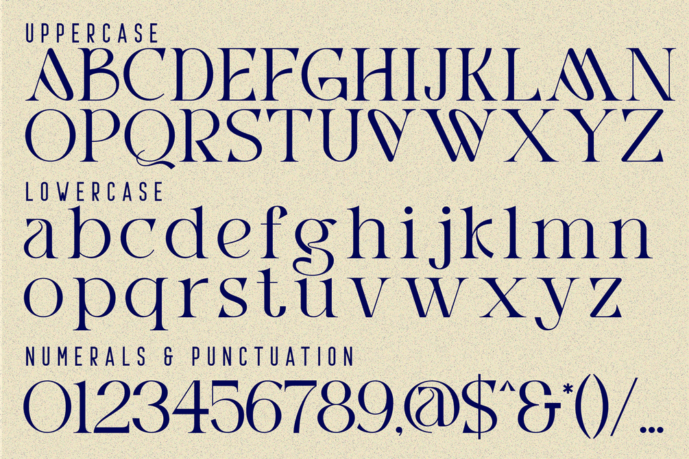 Greater Meaning - Modern Serif Font: The Romantic Swash-Serif Typeface, a sophisticated display font that marries the structure of a classic high-contrast serif with the lyrical beauty of hand-drawn calligraphy. This typeface exudes an air of vintage luxury and romantic flair, perfect for projects demanding refinement and drama. The design is characterized by its signature dramatic contrast, showcasing thick, confident stems opposed by delicate, flowing hairlines. What truly sets Greater Meaning apart are its graceful swash elements and elegant loops—especially within the lowercase letters—that allow words to seemingly dance across the page. It possesses a uniquely feminine and artisanal quality. This font is the perfect accompaniment for luxury branding, editorial layouts, bespoke wedding stationery, high-end packaging, and any creative work that seeks a romantic, art-deco, or opulent feel.
